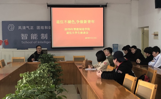 3月5日下午在智能制造学院会议室,李珂书记组织召开了以“退伍不褪色,争做新青年”为主题的退役士兵大学生心理座谈会。来自全院42名位退役士兵学生参加了此次思想座谈会。